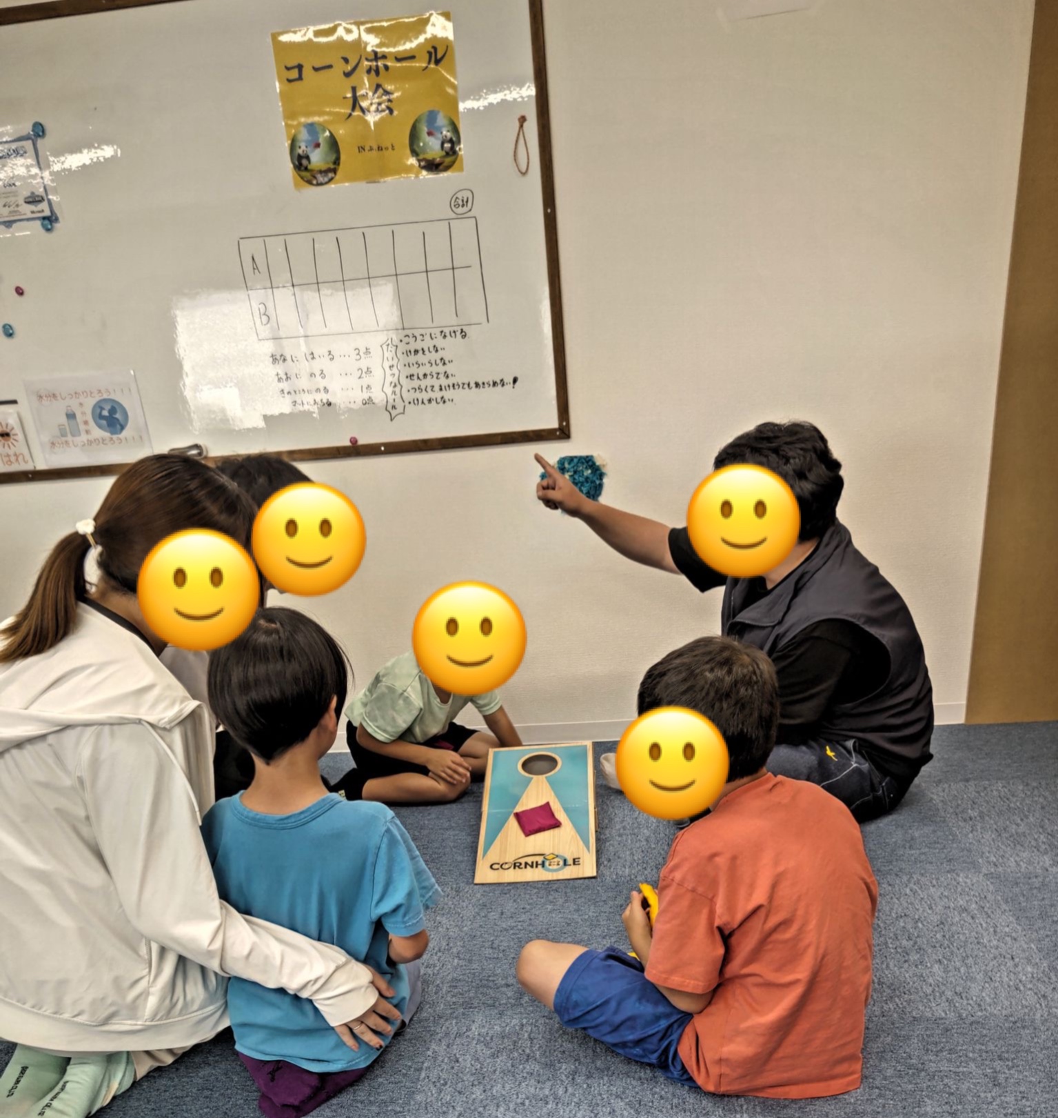 夏休みに入り、「お子さんたちが他のお子さんと楽しく交流できるイベントを!」という思いから、今回は 「コーンホール大会」 を開催しました!!