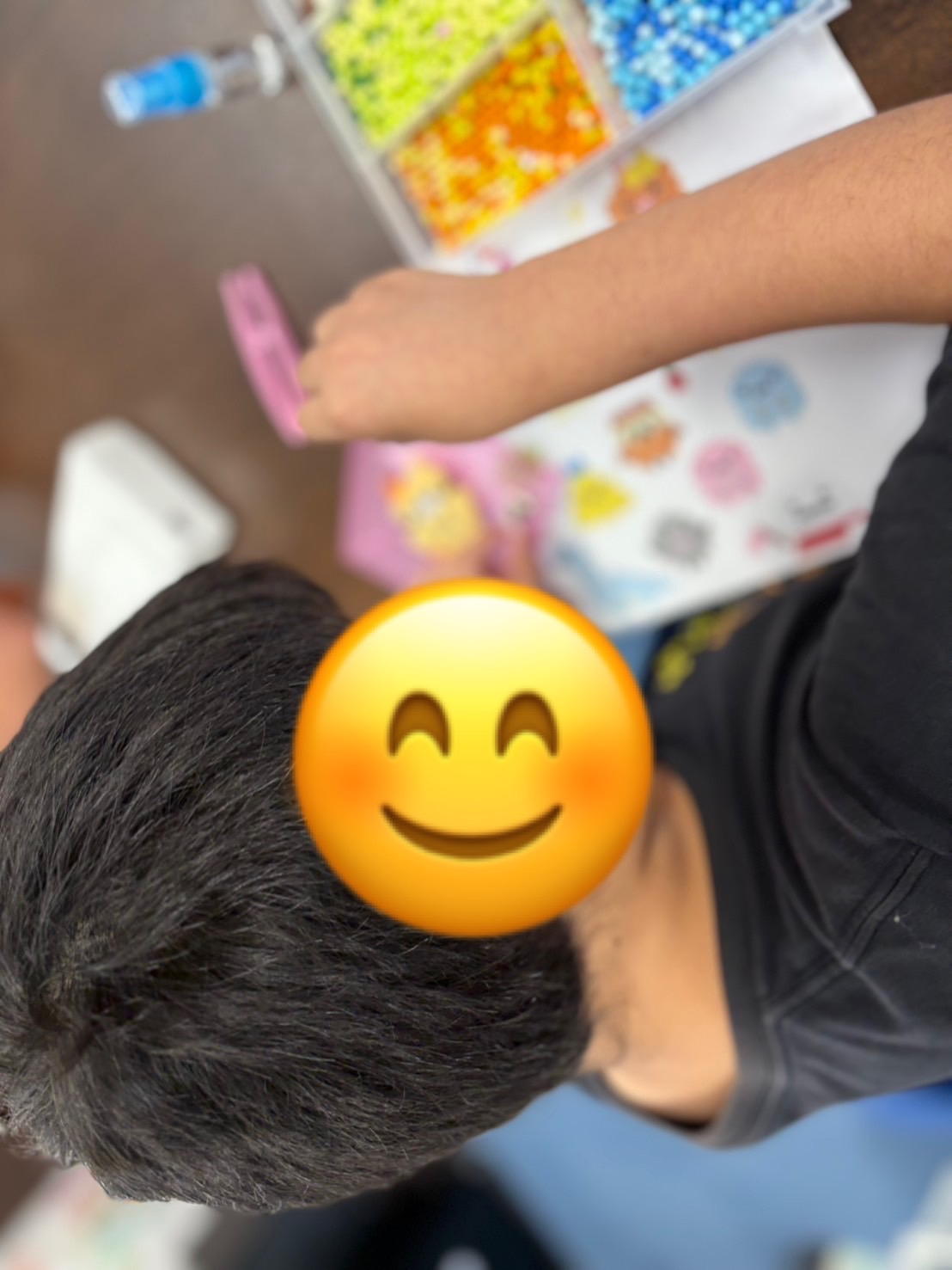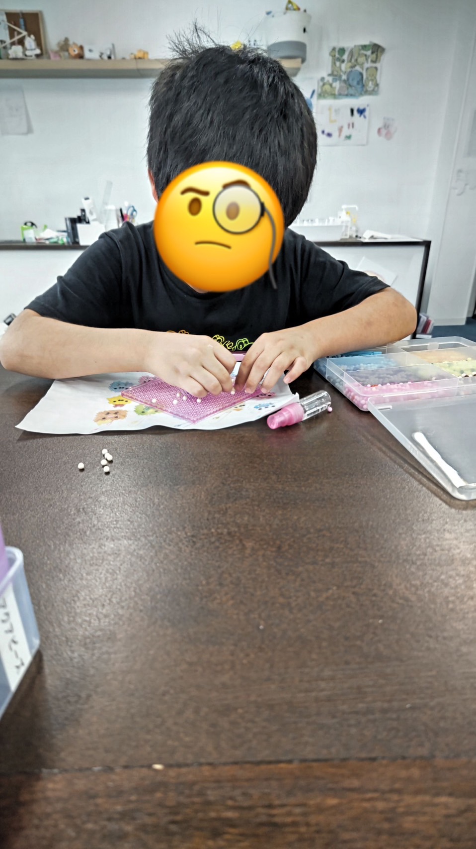お子さんは楽しみのあまりべたべたのビーズを触ってしまいバラバラになってしまうことも、、