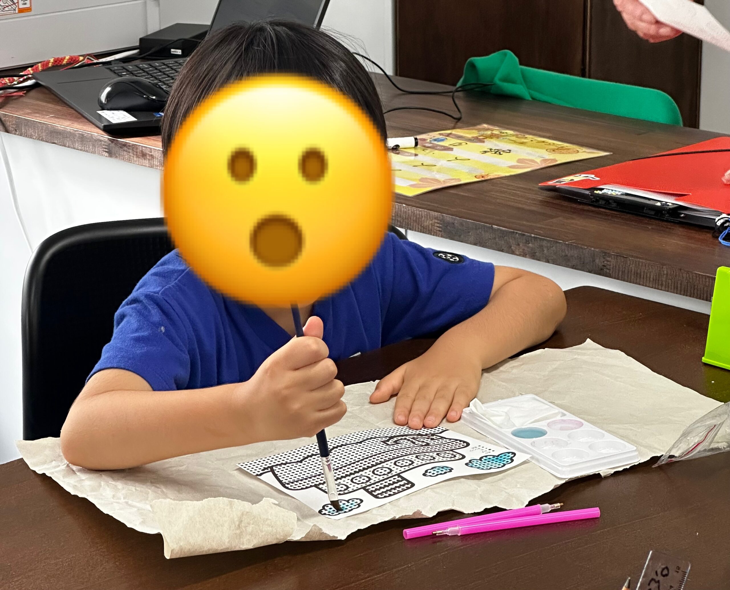 最初は「これ、ほんとに色が出るの?」と、半信半疑な様子でしたが、いざ筆に水を含ませて塗り始めると…「色が出てきた!」「こっちは何色かな?」と目をキラキラさせながら、夢中で塗っていきました!!