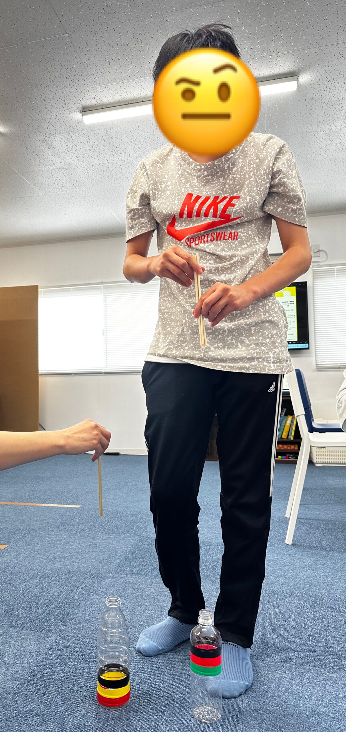 結果的には、割りばしを入れることができませんでしたが、諦めずに何度も挑戦している姿がとても印象的でした!