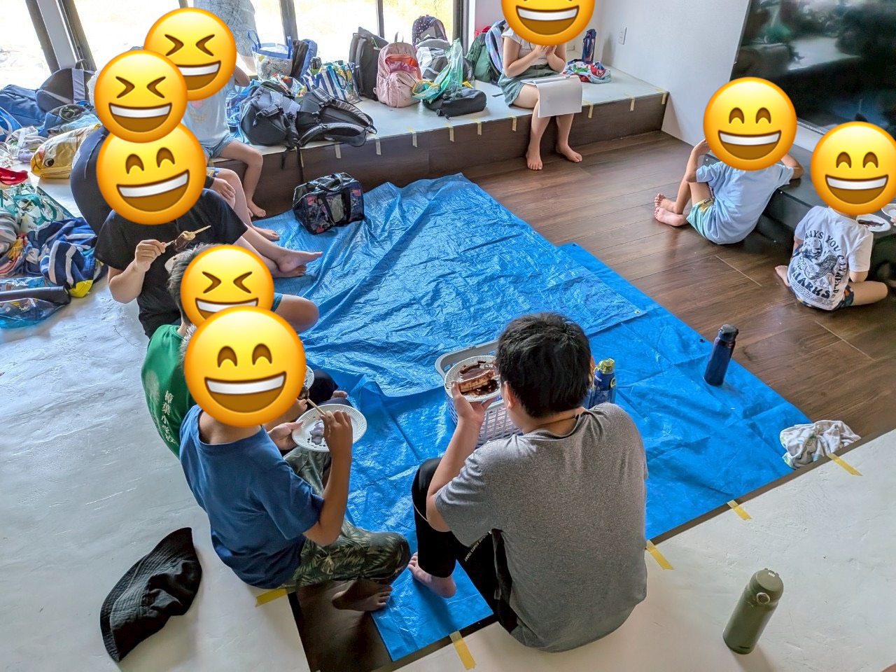 外で遊んだ後は体を休めるために建物の中でおやつ休憩にしました!