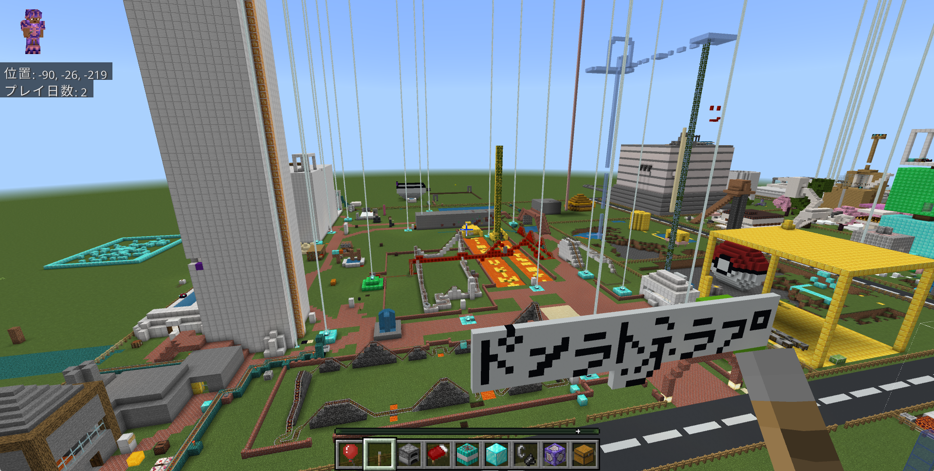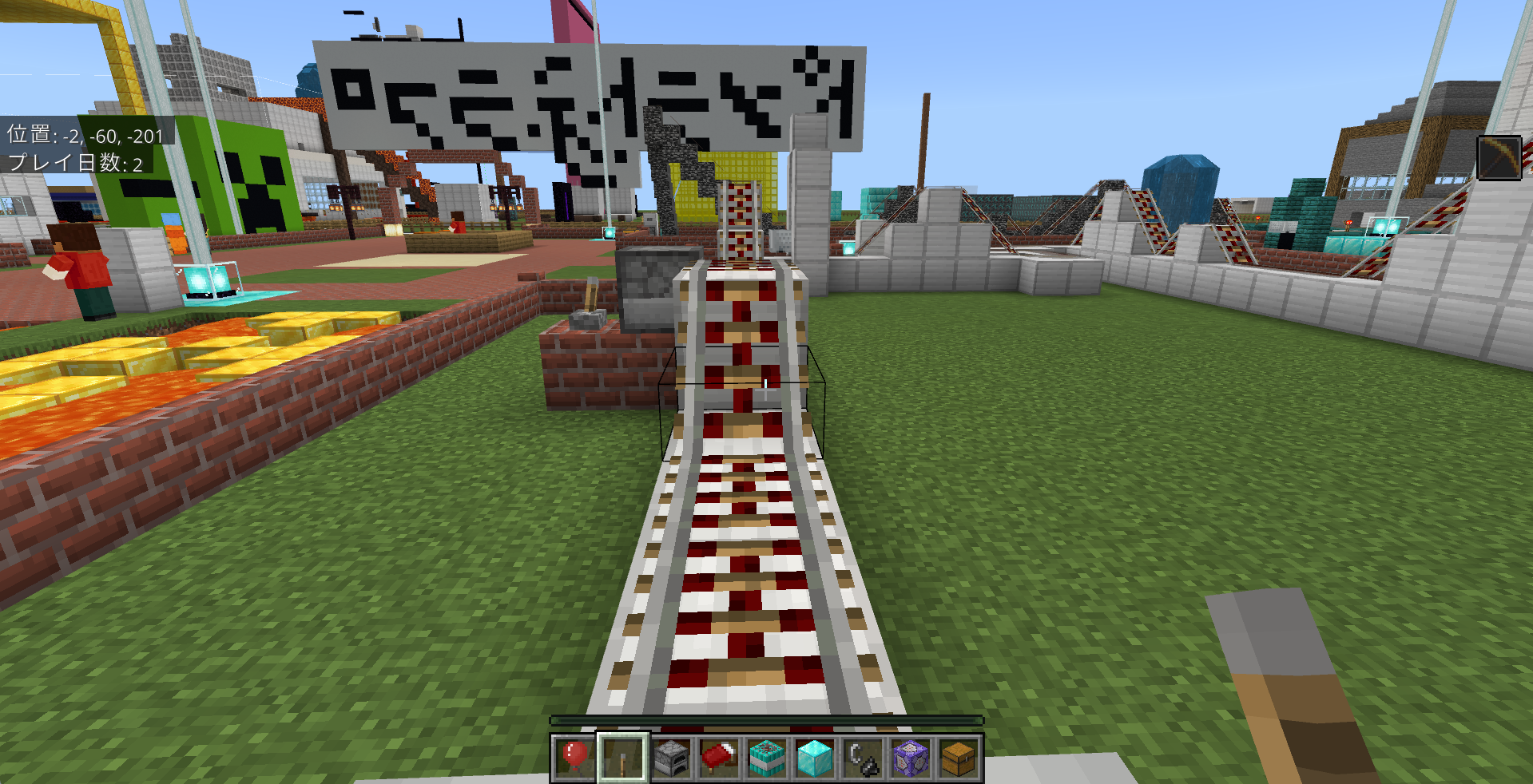 長期にわたって取り組んできた遊園地がついに完成し、入場ゲートにはブロックで「プラネットランド」と文字を作って立派な門を完成させていました!!