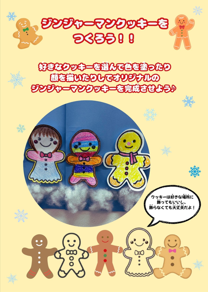 今回は、12月の壁面製作として取り組んだ「ジンジャーマンクッキー」の製作の様子をご紹介します!